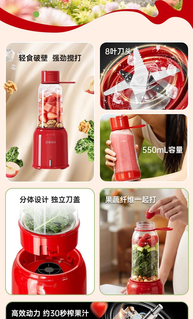 臻米轻食榨汁/破壁机ZMGZ-J19Q(红色版)