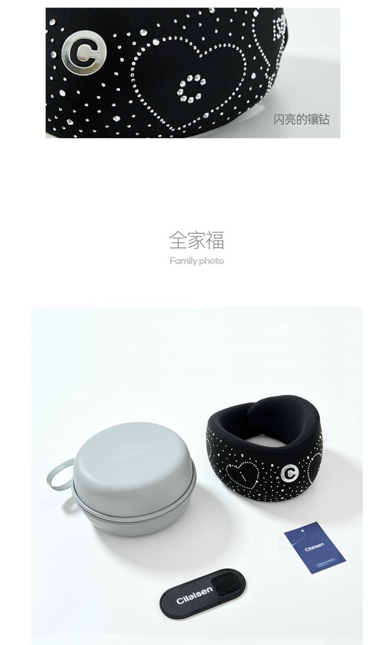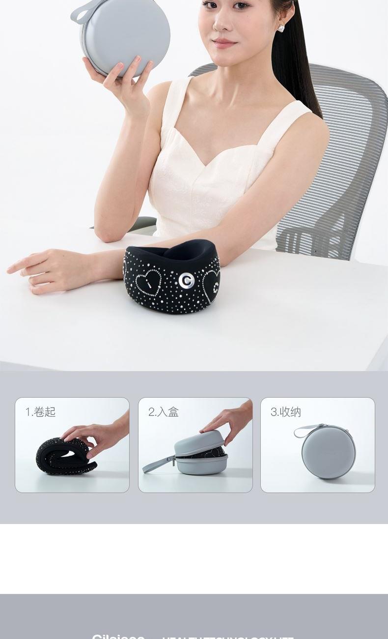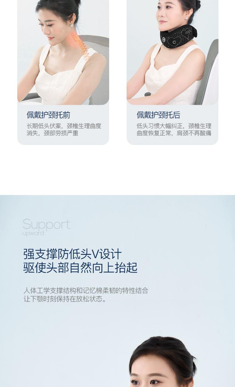产品参数: 型号:CP-UP1 条码 : 6972831861249 颜色:黑色 尺寸:555X95X36mm 外套:75%锦纶 25%氨纶 外内套:88%锦纶 12%氨纶 内罩:94%聚酯纤维 6%氨纶;填充物:聚氨酯 收纳盒尺寸:160X160X90mm ;收纳盒材质:EVA 毛重:240g ;包装清单:护颈托、收纳盒、延长带 ; 执行标准:FZ/T 73044-2012-合格品 GB18401-2010-B类 核心卖点: 1,360°环绕护颈,0负担,强支撑符合人体工学,良好的支撑有效缓解低头族颈脖僵硬舒缓颈脖压力 2,3秒回弹记忆棉,柔软亲肤,不闷汗;时刻让下颚保持放松状态,快回弹记忆棉会驱使头部自然向上抬起 3,多场景适用:久坐/长途驾驶/办公/家务/低头一族 4,加强魔术搭扣+延长带设计,适合各种体型脖子,魔术贴长期粘贴不松动 5,搭赠EVA收纳盒,小巧便携方便出行